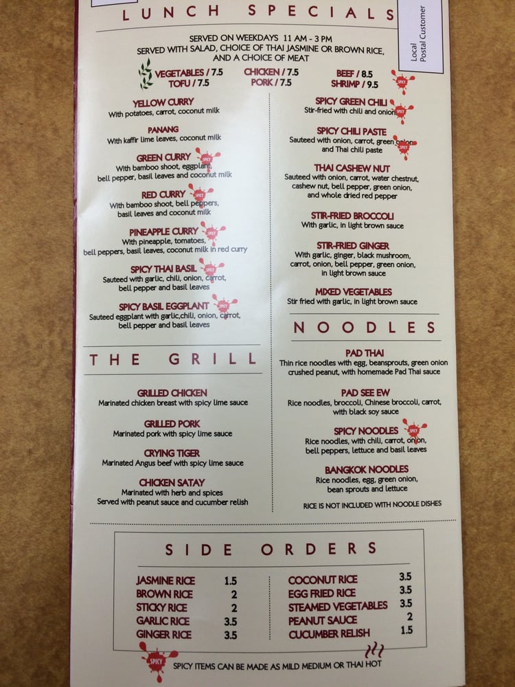 Grilled half a chicken marinated with Thai herbs & spices. Served with sweet chili sauce.
